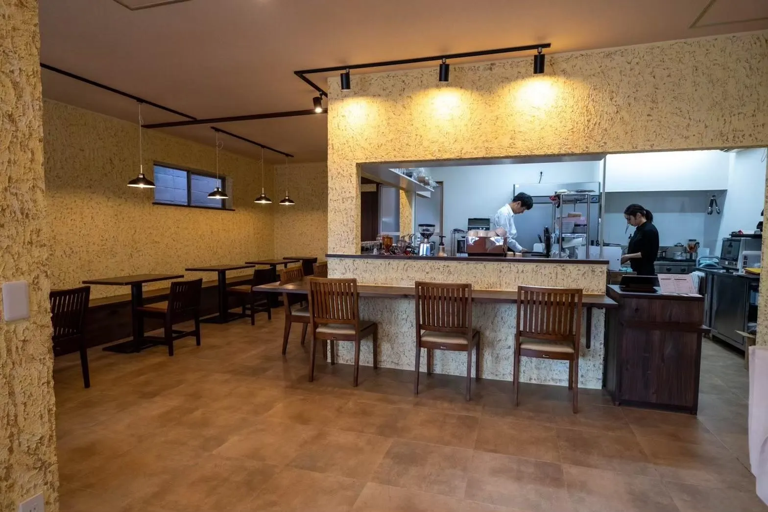 内観は、木目を活かしたカウンター・テーブル、照明計画で読書や会話に適した落ち着いた雰囲気を確保。一人利用からグループまで対応できる多様な席配置で、“地域の方に長く愛される店づくり”を意識した設計・施工です。